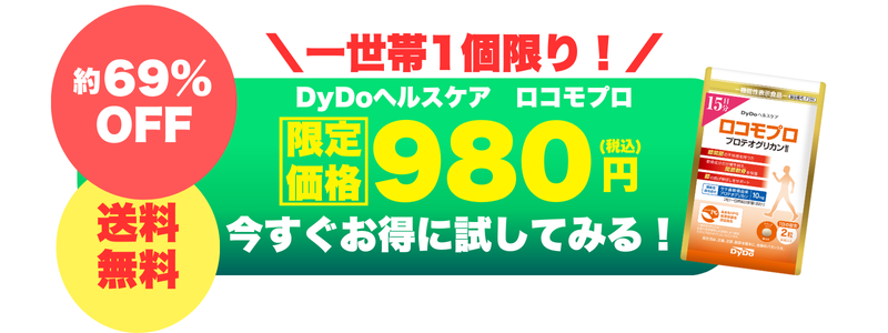 ロコモプロは気軽にお試しいただくために約15日分を約69%オフで購入できる方法が最安値なのですが、実は…さらにお得な方法があるので、ここまで読んでいただいた方だけにご案内しちゃいます!